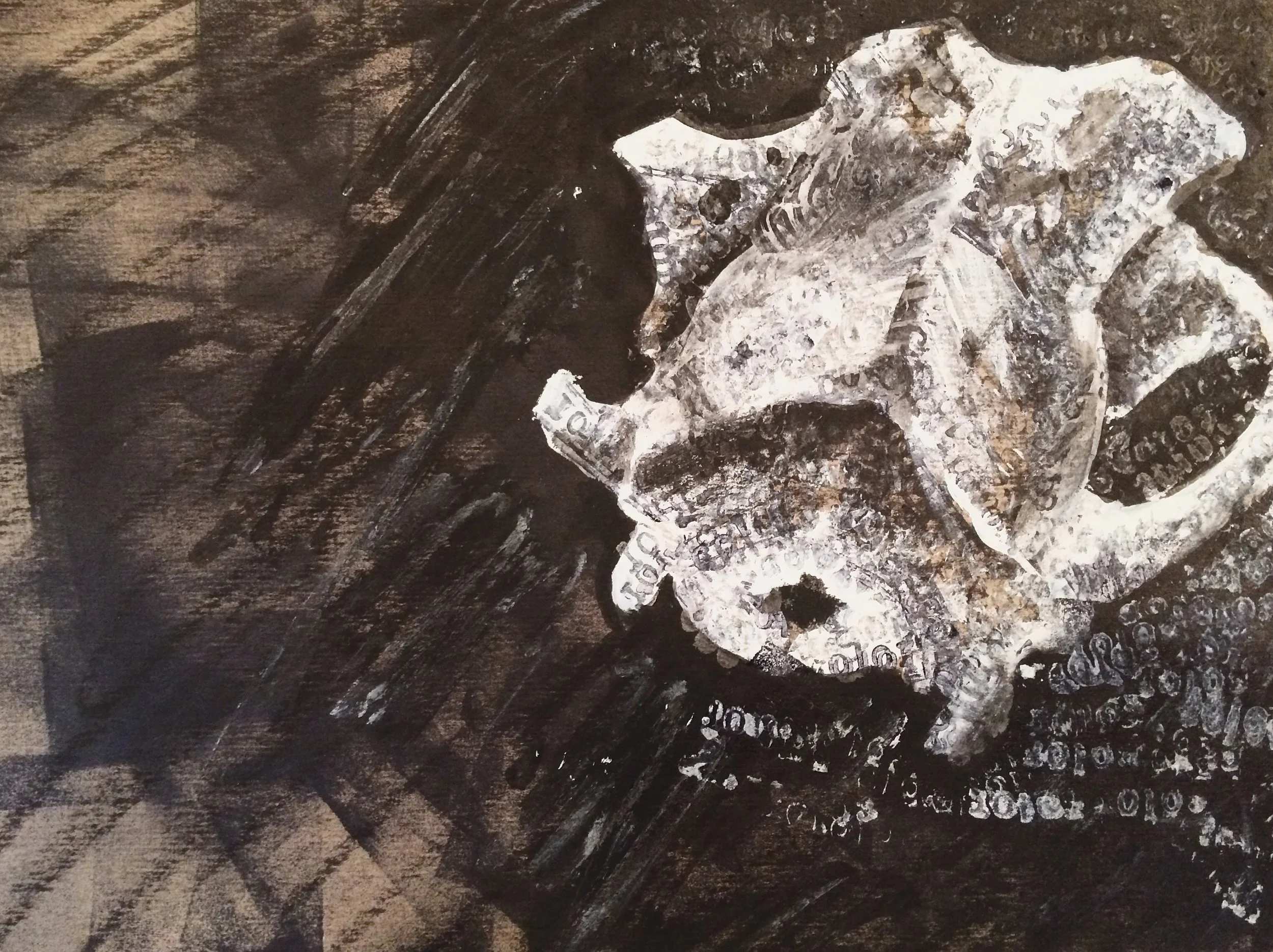 Skull Print Mixed Media on Cardboard, 2017 11"x7"